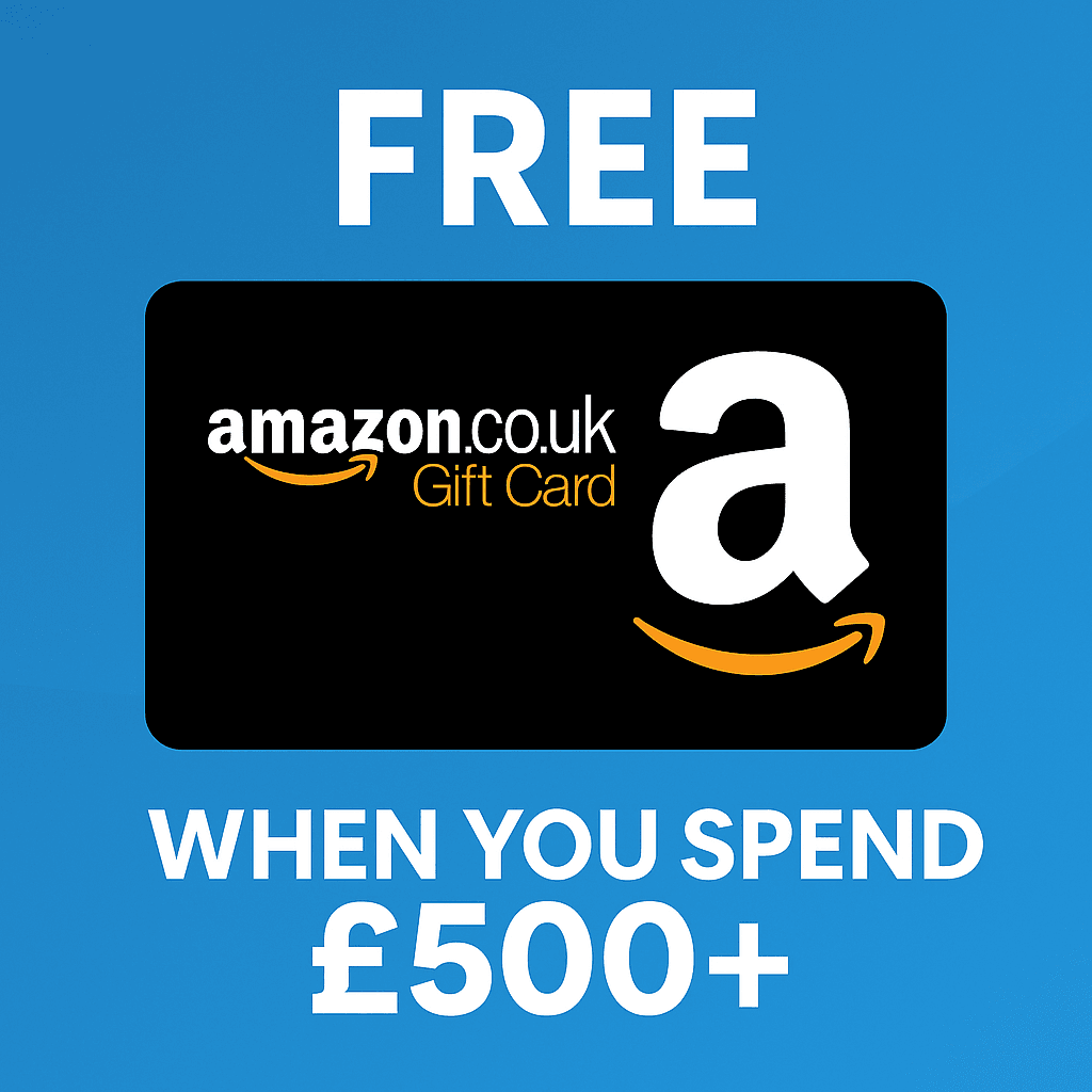 Here’s how it works: the more you spend, the bigger your reward. Spend £500 and we’ll send you a £10 Amazon voucher. Hit £1,000? That jumps to £25. Go big with £2,000+, £3,500+, or even £20,000+, and watch those vouchers grow all the way up to £500! No codes, no hoops to jump through — we’ll automatically send your voucher after your order.
