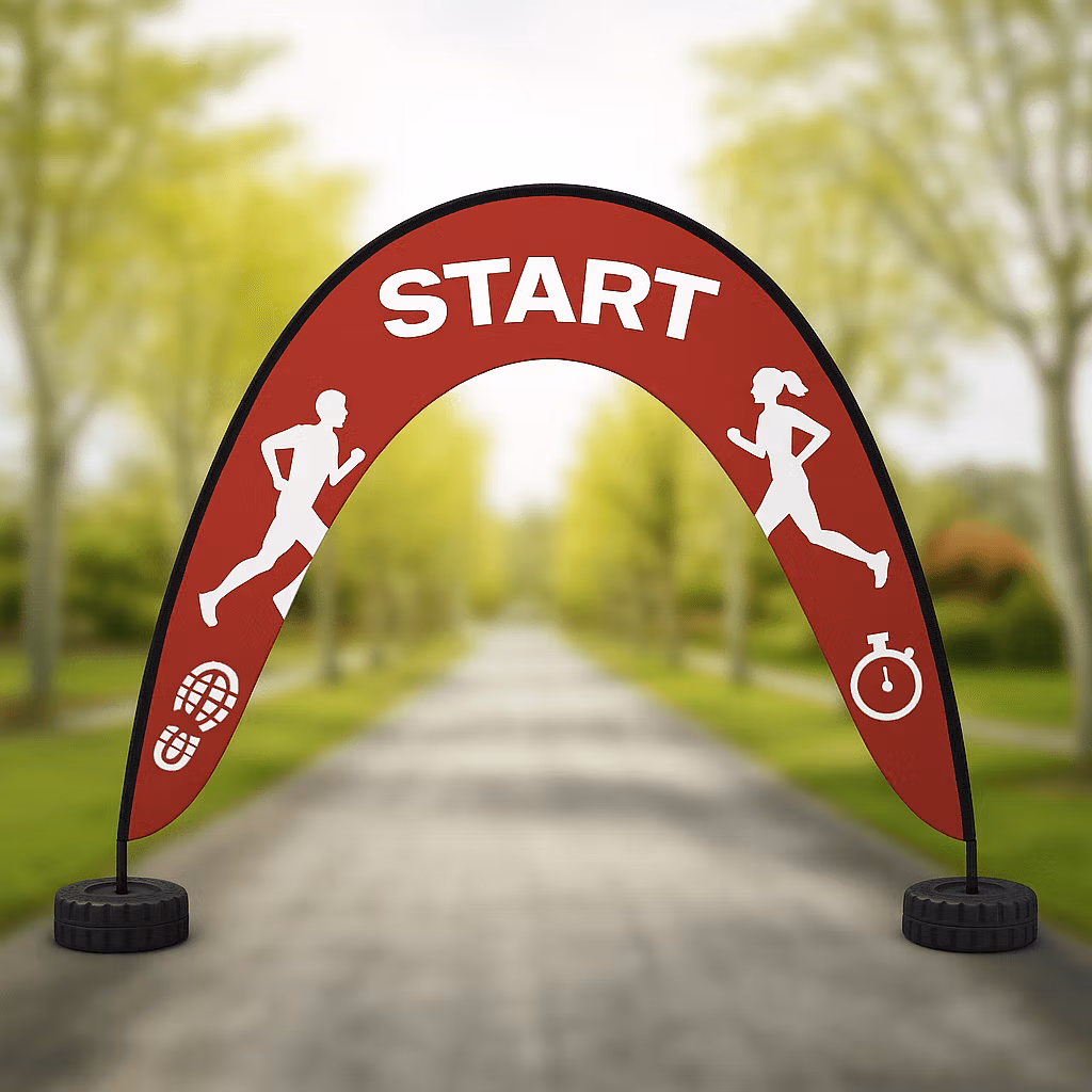 The Arch Flag is a striking display solution, perfect for both outdoor and spacious indoor events. It’s especially effective at festivals, marking entrances, or highlighting start and finish lines at races or sports events.