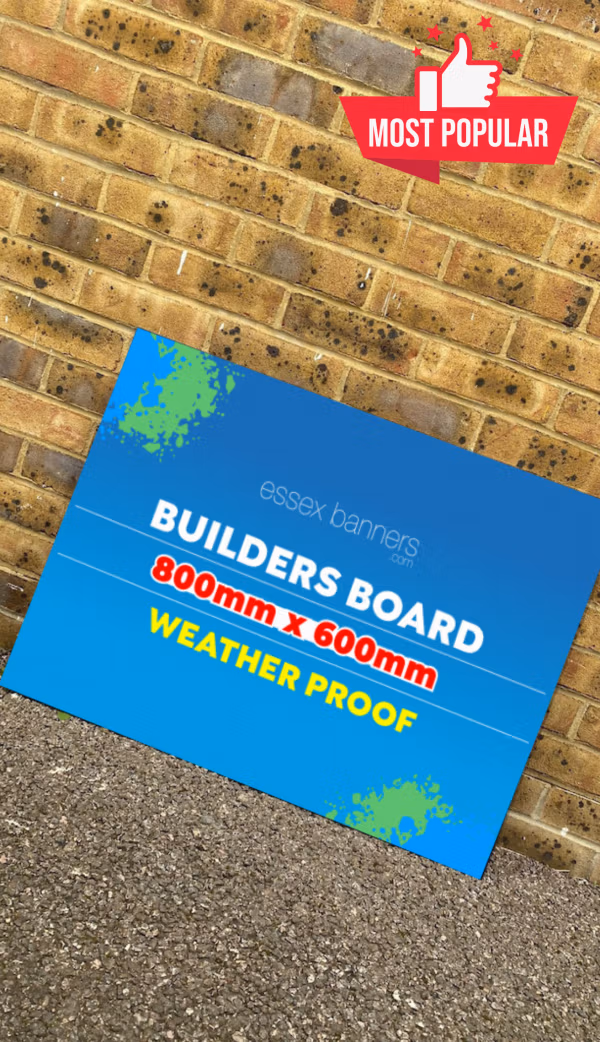 Builders boards (also called signboards and advertising boards for tradesmen) are most commonly used to display when working on site or when you have finished your job to promote your work.