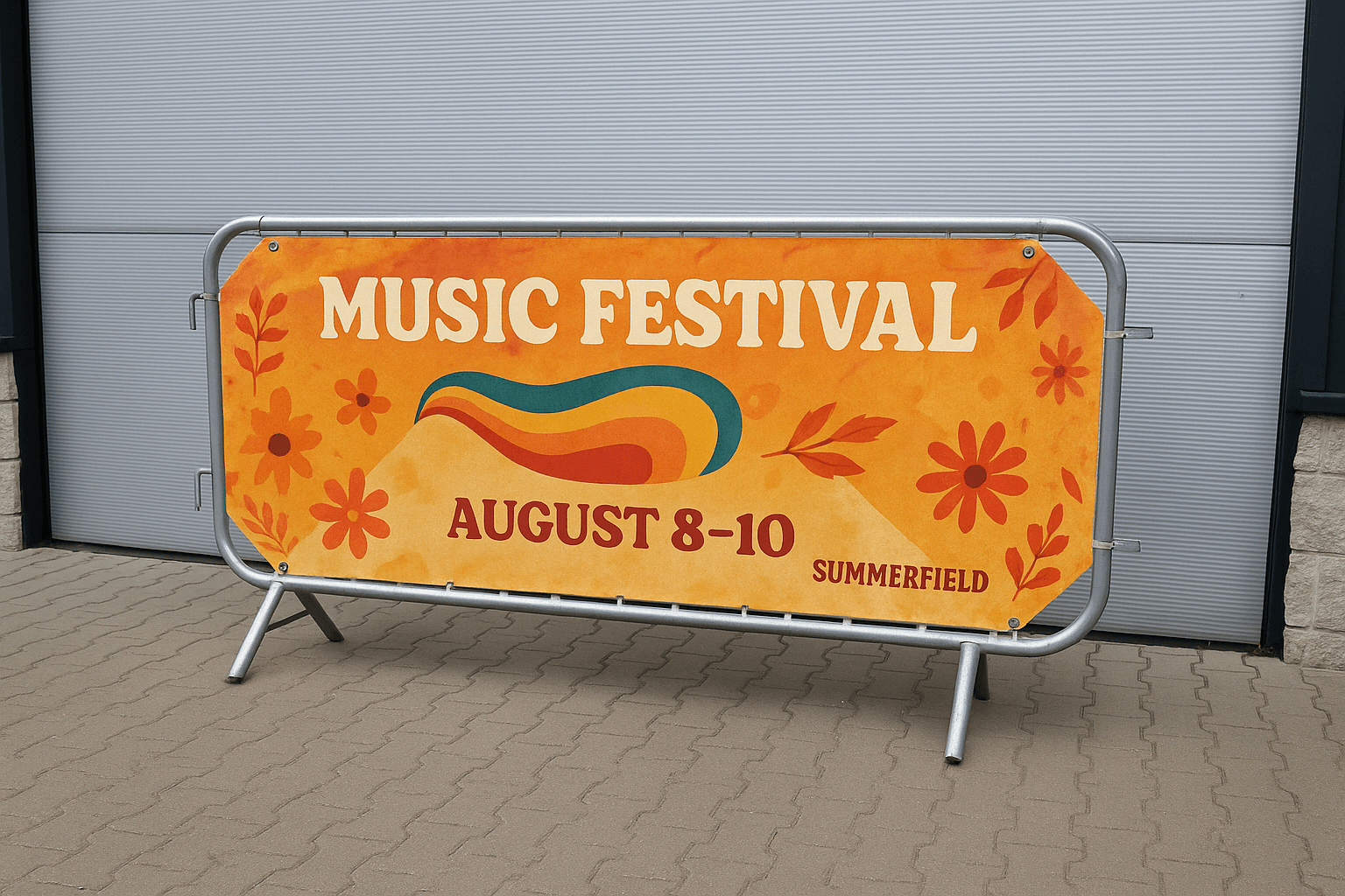 Crowd control banners, also known as barrier covers or fence banners, are custom-printed wraps that fit snugly over metal crowd control barriers. They’re designed to serve a dual purpose — managing pedestrian flow while promoting your brand, sponsor, or message in high-traffic areas.
