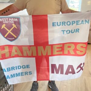 Our bespoke flags are printed with 80-90% show-through on the reverse which ensures your design is visible on both sides. Each flag is finished to your specific requirements, including a post print heating process to “fix” the ink into the fabric. The result in a scruff resistant and washable material.