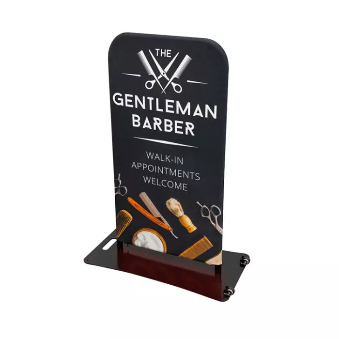 • The fabric sleeve graphic means you can print and supply the artwork separately or include it. Since your printing workflow is already established, you’re well-positioned to offer this as a full-service signage product (hardware + printed graphics) or as a graphics-only upsell.