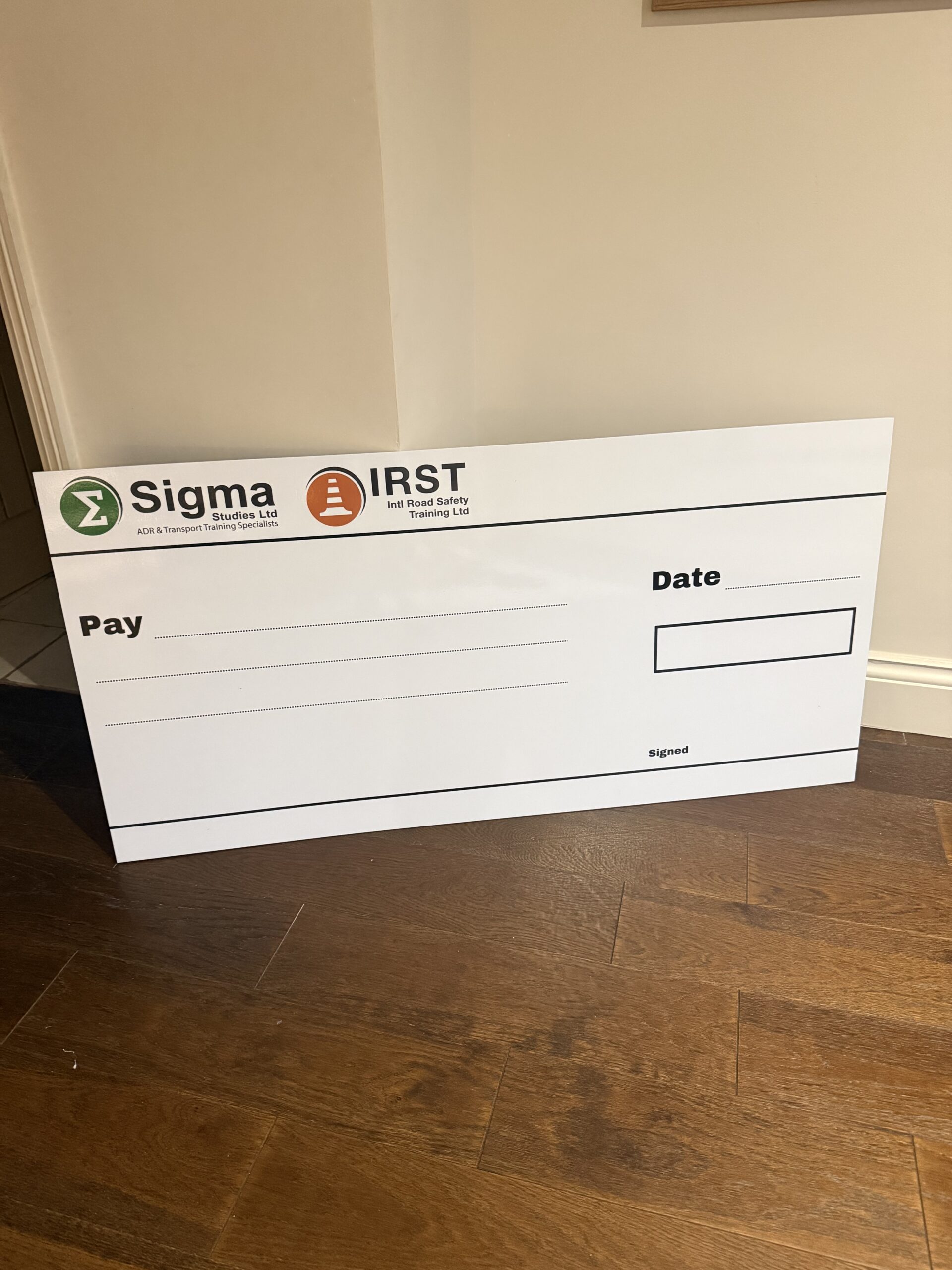 Forget flimsy cardstock or rollable paper that creases and bends. Our giant cheques are printed directly onto premium 5mm Foamex (PVC foam board). This material is the industry standard for professional-grade display items for several key reasons: