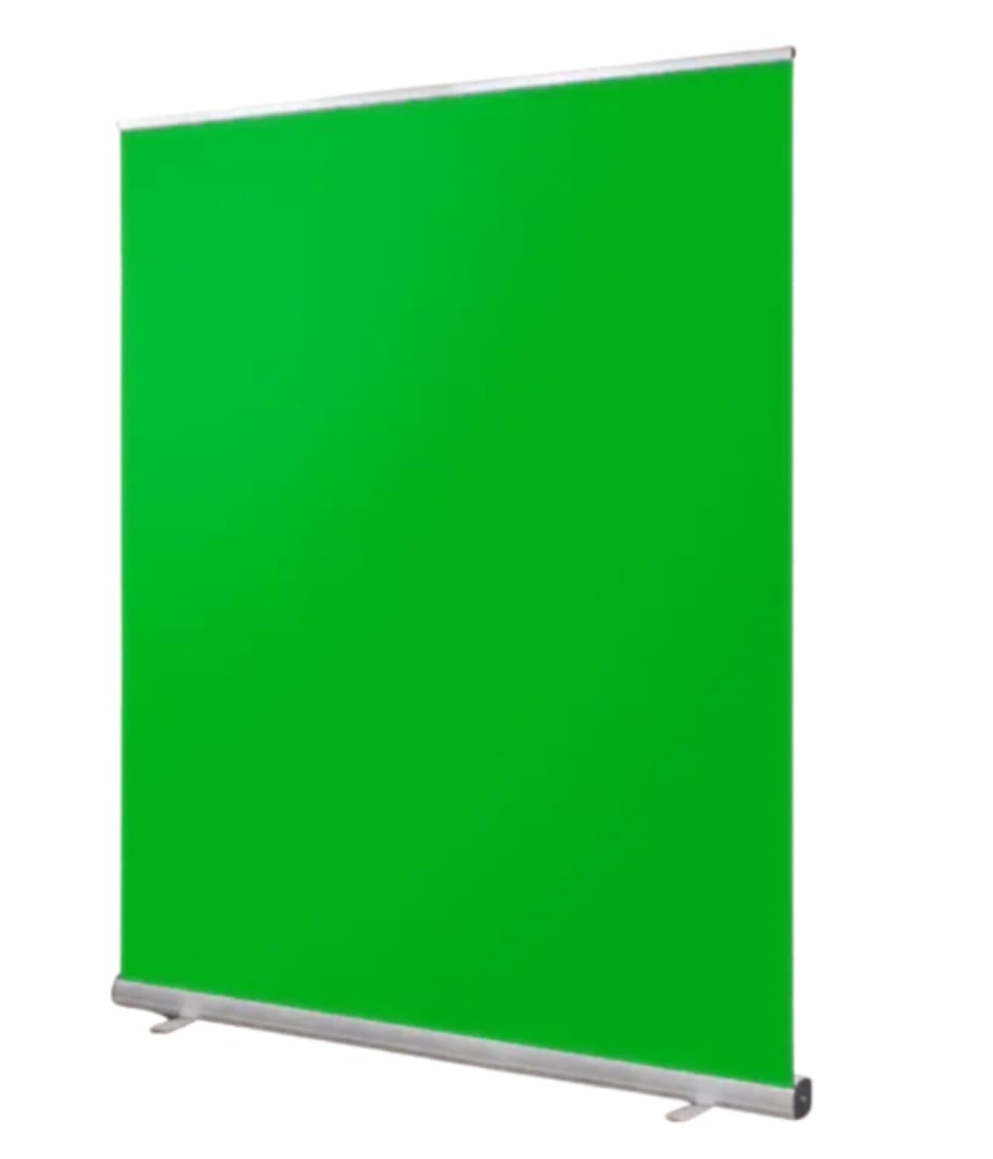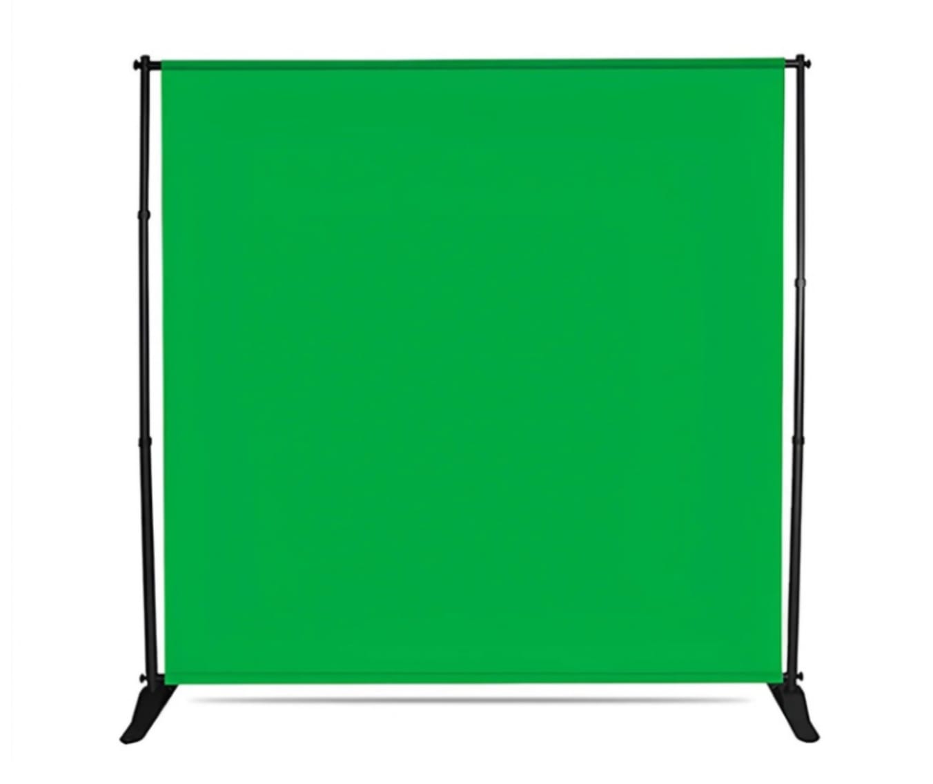 • 2.4m x 2.4m is the telescopic stand with PVC Green banner backdrop