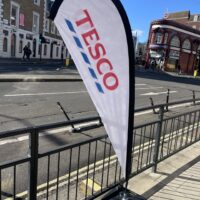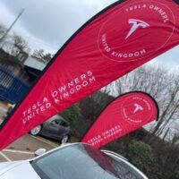 Teardrop flags Printed onto 117gsm Knitted Polyester with dye-sublimation process resulting in 80-90% show-through on the reverse.